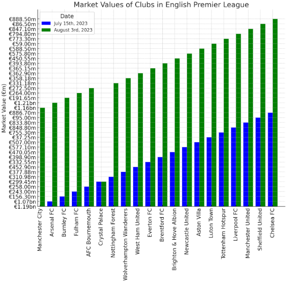 | Club Name | Market Value on July 15th 2023 | Squad Size on July 15th 2023 | Current Value as on August 3rd 2023 | Squad Size as on August 15th 2023 | Difference | Size |